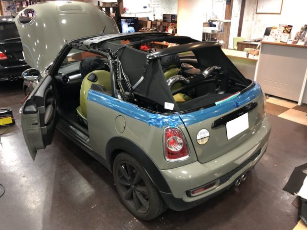 ご納車時現行MINIのエメラルドグレーMに全塗装。